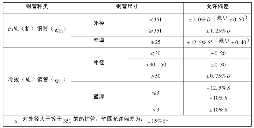 低溫管道用無縫鋼管尺寸及允許偏差的范圍